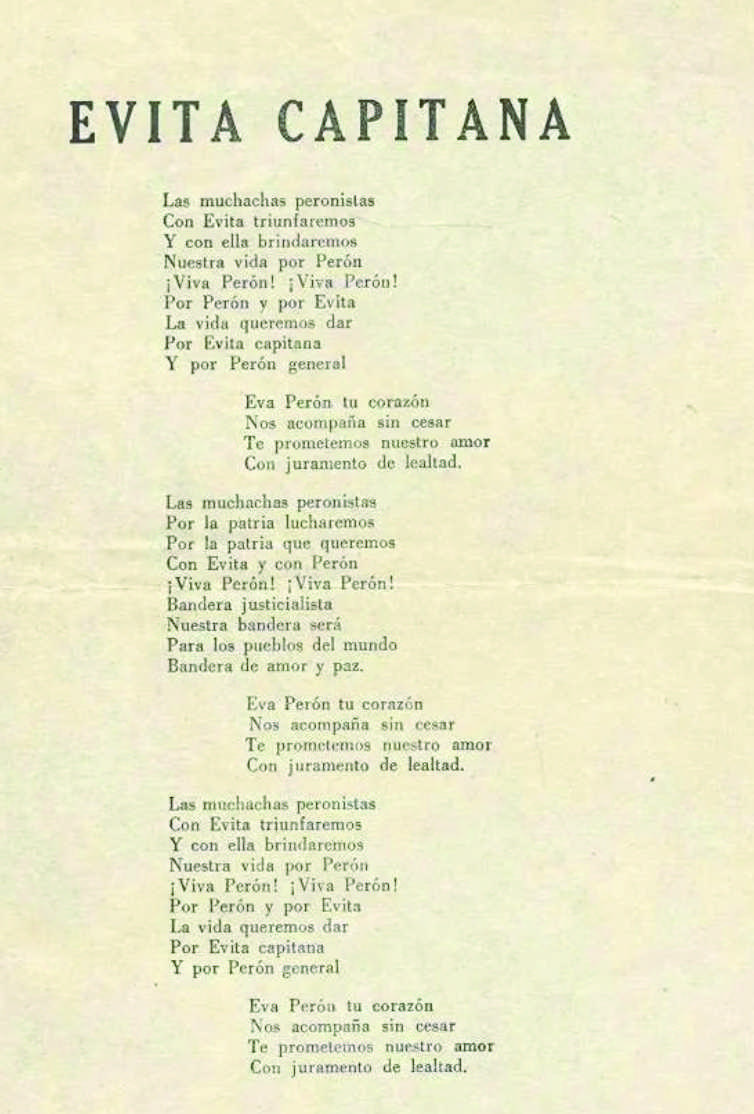 Evita Capitana es una marcha argentina utilizada frecuentemente por el Partido Peronista Femenino durante sus actividades, reconocida como la versión femenina de Los Muchachos Peronistas. Fue entonada por primera vez en la provincia de Misiones en febrero de 1950.